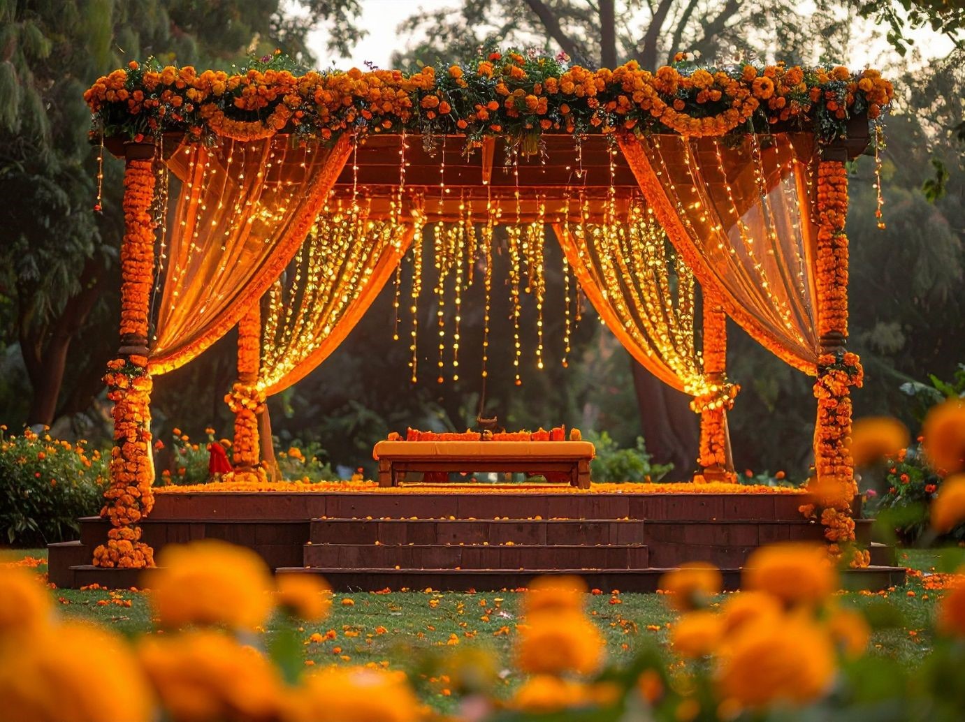 Discover our mandap decoration packages designed to create a graceful and memorable setting for your special ceremonies. We offer traditional and modern mandap designs with quality materials, elegant draping, floral décor, and perfect lighting to match your theme and budget.